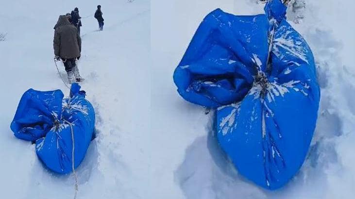 4 Gündür Defnedilemedi: Cenazeyi Brandaya Sarıp Iple Çekerek Köye Götürdürler